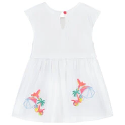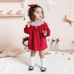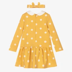 A vibrant yellow dress for baby girls by Spanish brand Abel & Lula, made in soft and silky twill. Fastening with a zip on the back, it is finished in a gorgeous orange and green floral pattern for a vintage-inspired look. Sweet and summery, it has a fixed bow on the chest, pleats on the skirt, and a full cotton voile lining for comfortable wear.
