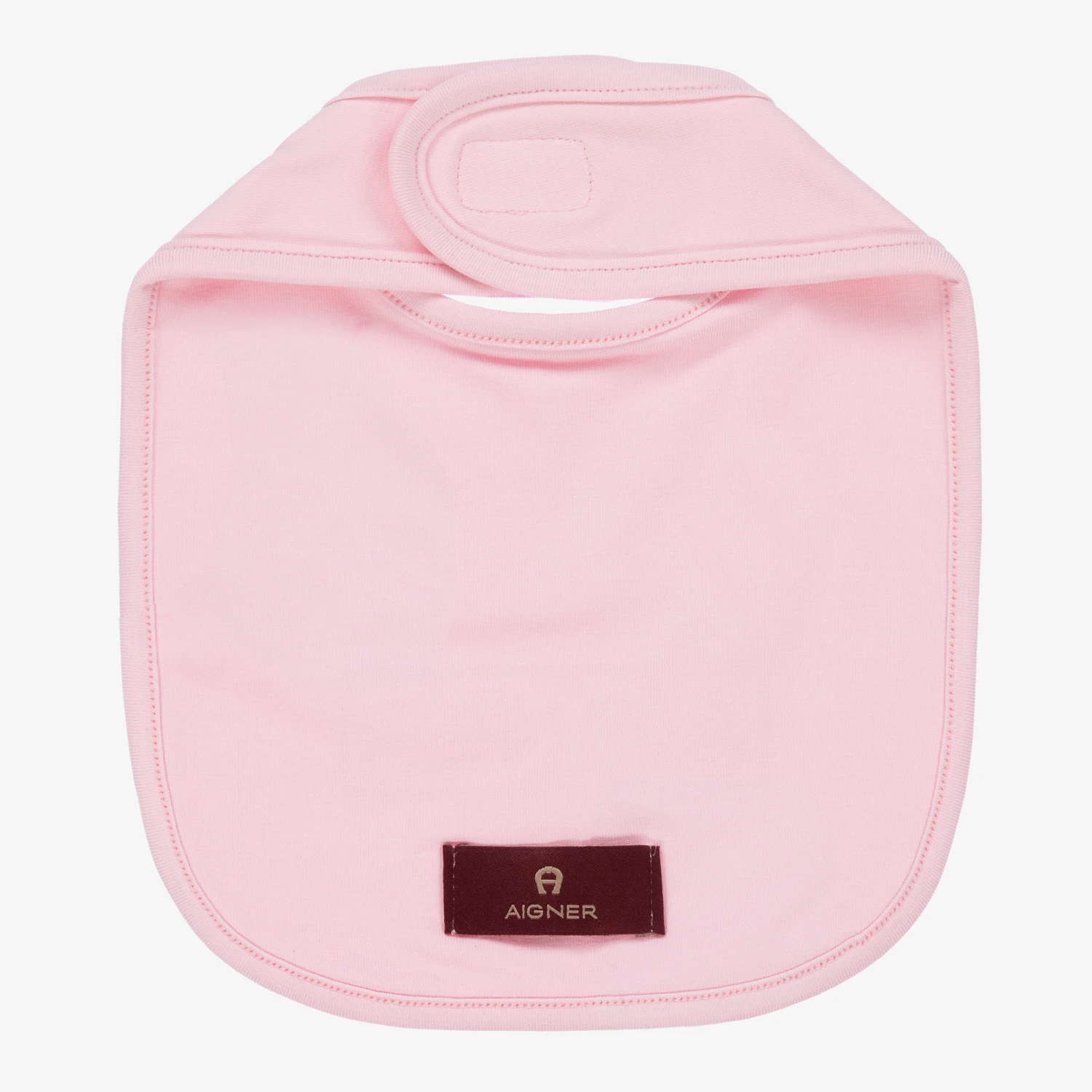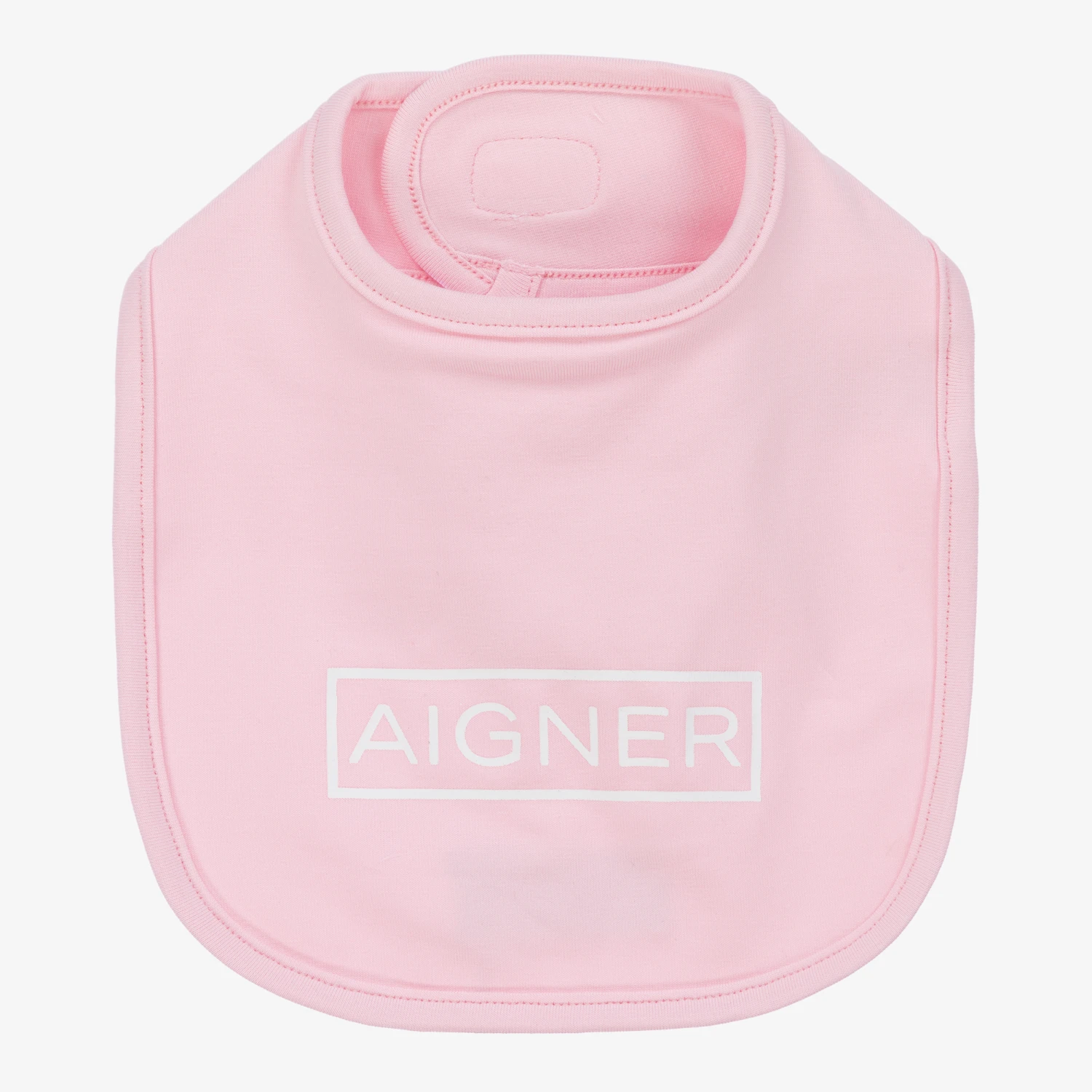 Cute pink bib for baby girls by AIGNER, made in a double layer of super soft Pima cotton jersey. Great for catching those inevitable spills, it has the brand’s logo printed on the front in white and fastens with a velcro tab on the back for a comfortable fit.