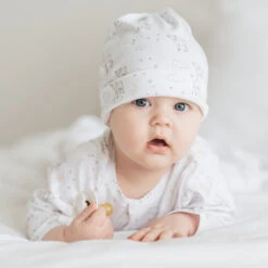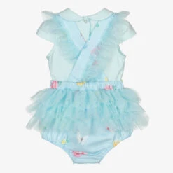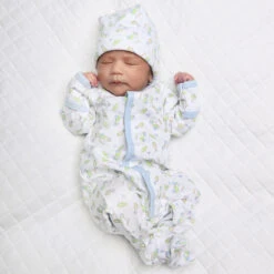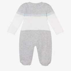 Babysuit gift set for boys and girls by Emporio Armani, in navy blue and white with a blue logo print. The babygrows come in a fabric pouch and all pieces are made in soft cotton jersey.
