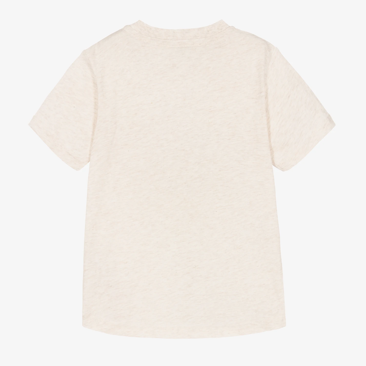 Light beige marl organic cotton T-shirt for younger boys by French luxury designer KENZO KIDS, with a black monkey printed on the front. Made in comfortable jersey, it has logo poppers on one shoulder to make dressing easy and an embroidered red logo patch by the curved hemline.
