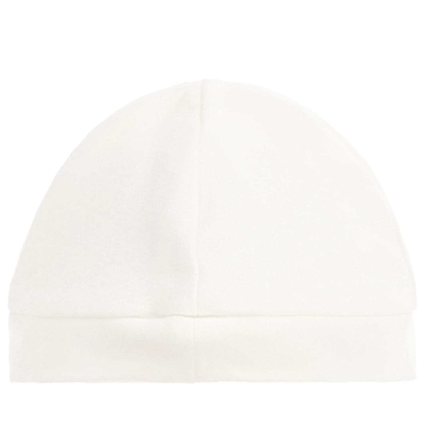 Baby girls ivory hat from Monnalisa, made in a double layer of soft cotton jersey. It has a velour Hello Kitty badge on the front in red and beige.