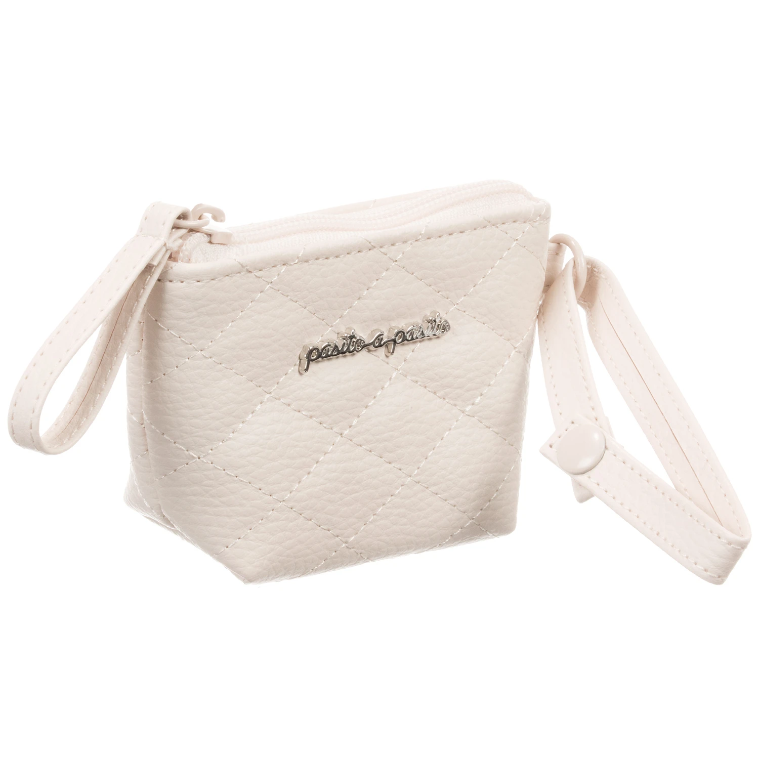 Never lose your baby’s pacifier with this pale beige dummy holder from Pasito a Pasito. Made in durable faux leather, this useful bag safely stores your baby’s dummies, keeping them clean and ready to use. There is a zip closure and a wrist strap with popper closure.