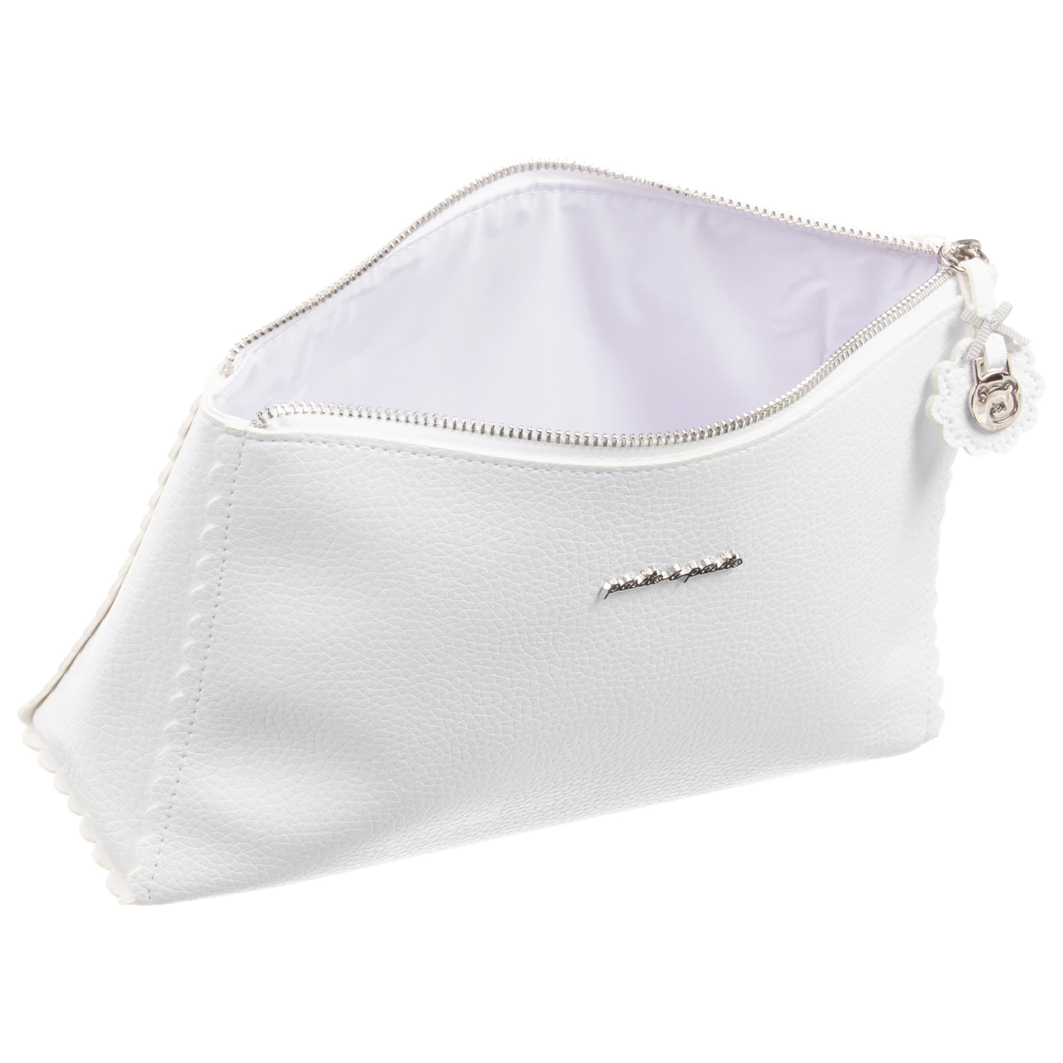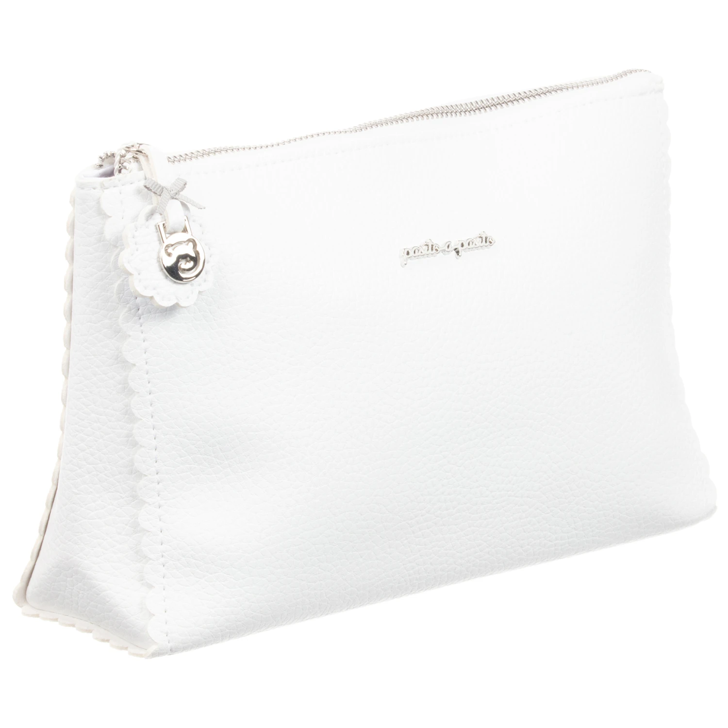 Made in soft and durable eco leather, this white wash bag by Pasito a Pasito is phthalates free and easy to clean. Stylishly made, it has frill detail on the sides, and the brand’s metal logo on one side.