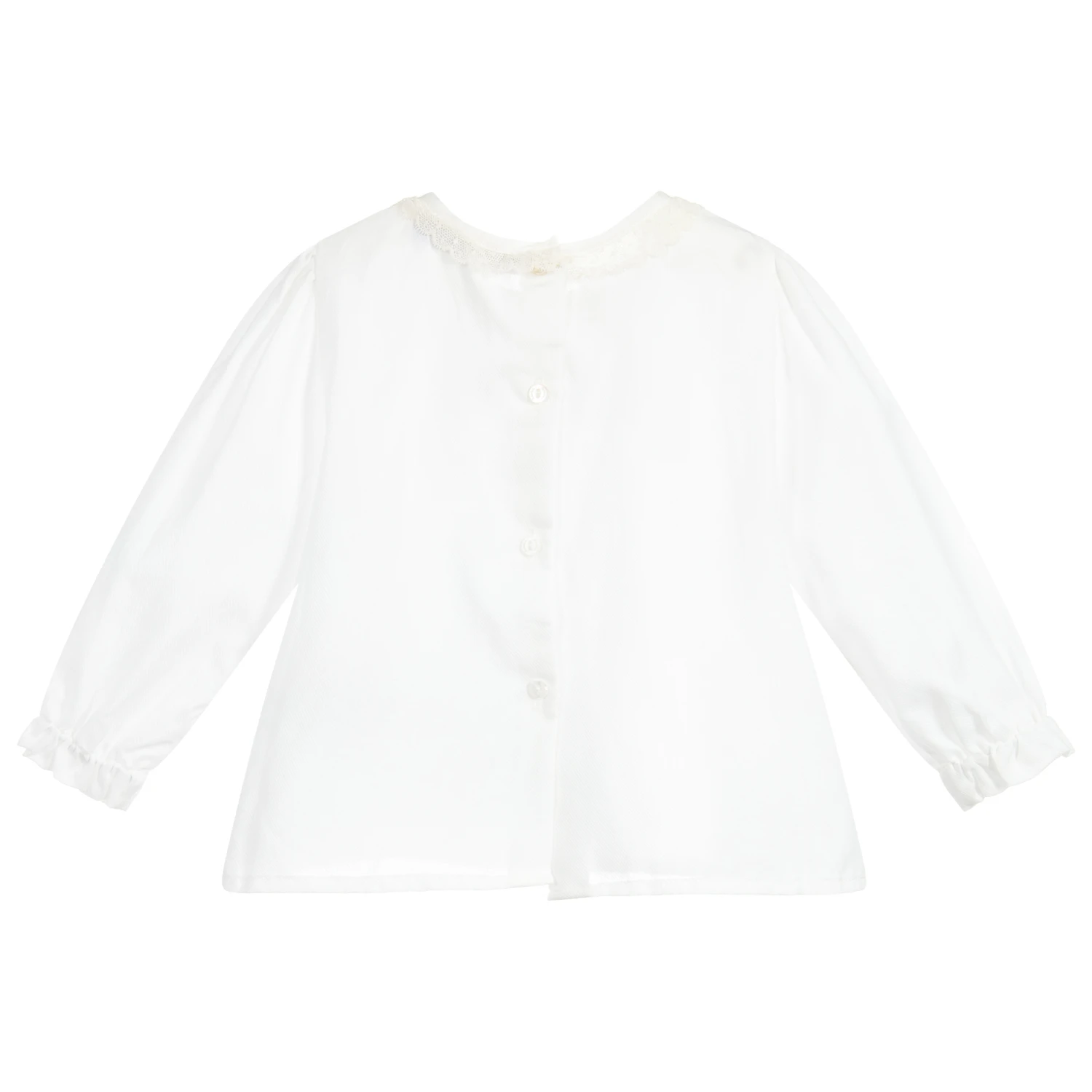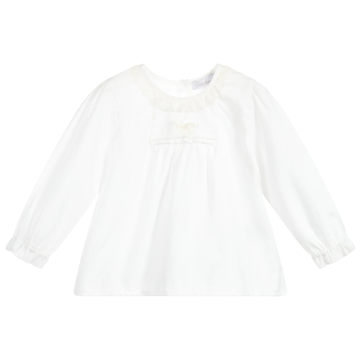 Lightweight ivory cotton blouse for baby girls by Patachou. It has pretty lace trims and elasticated cuffs