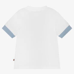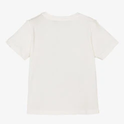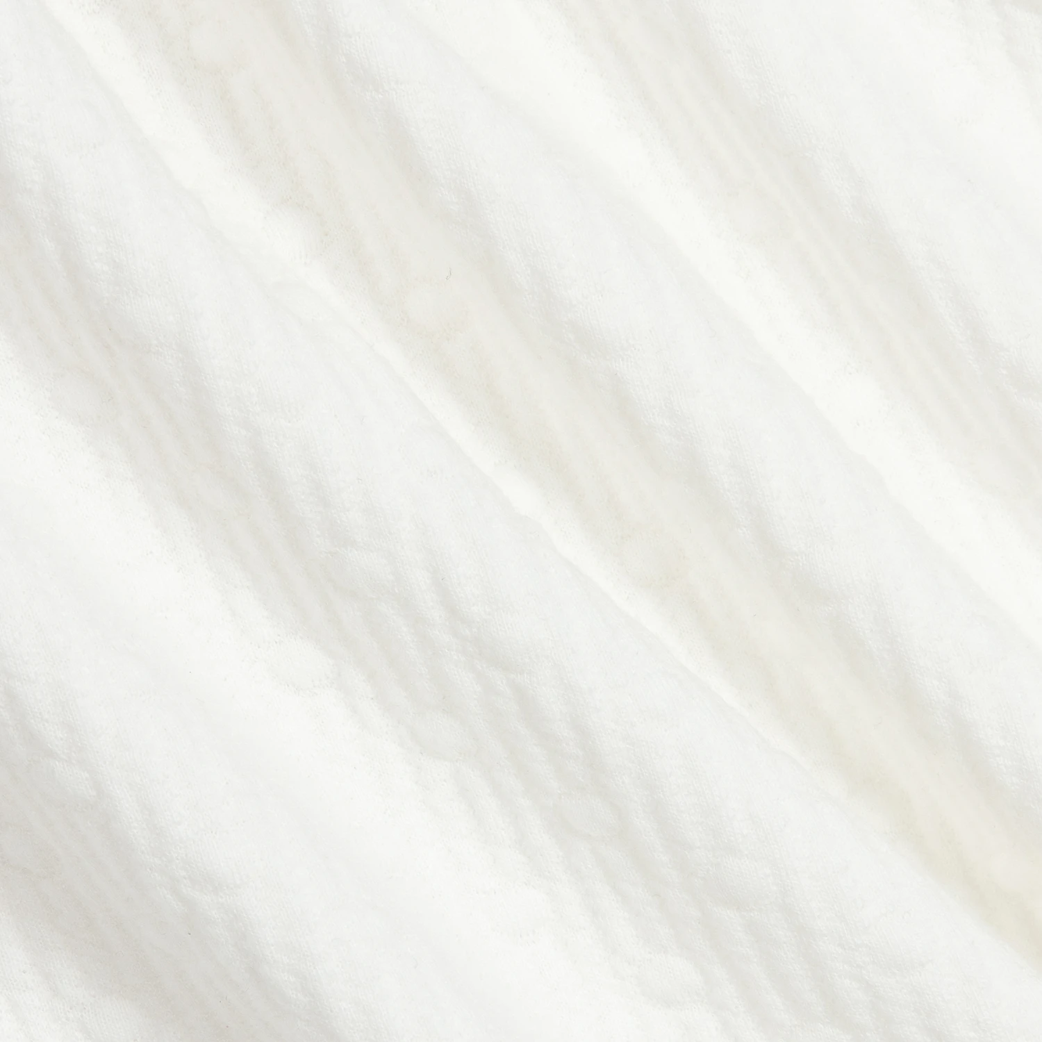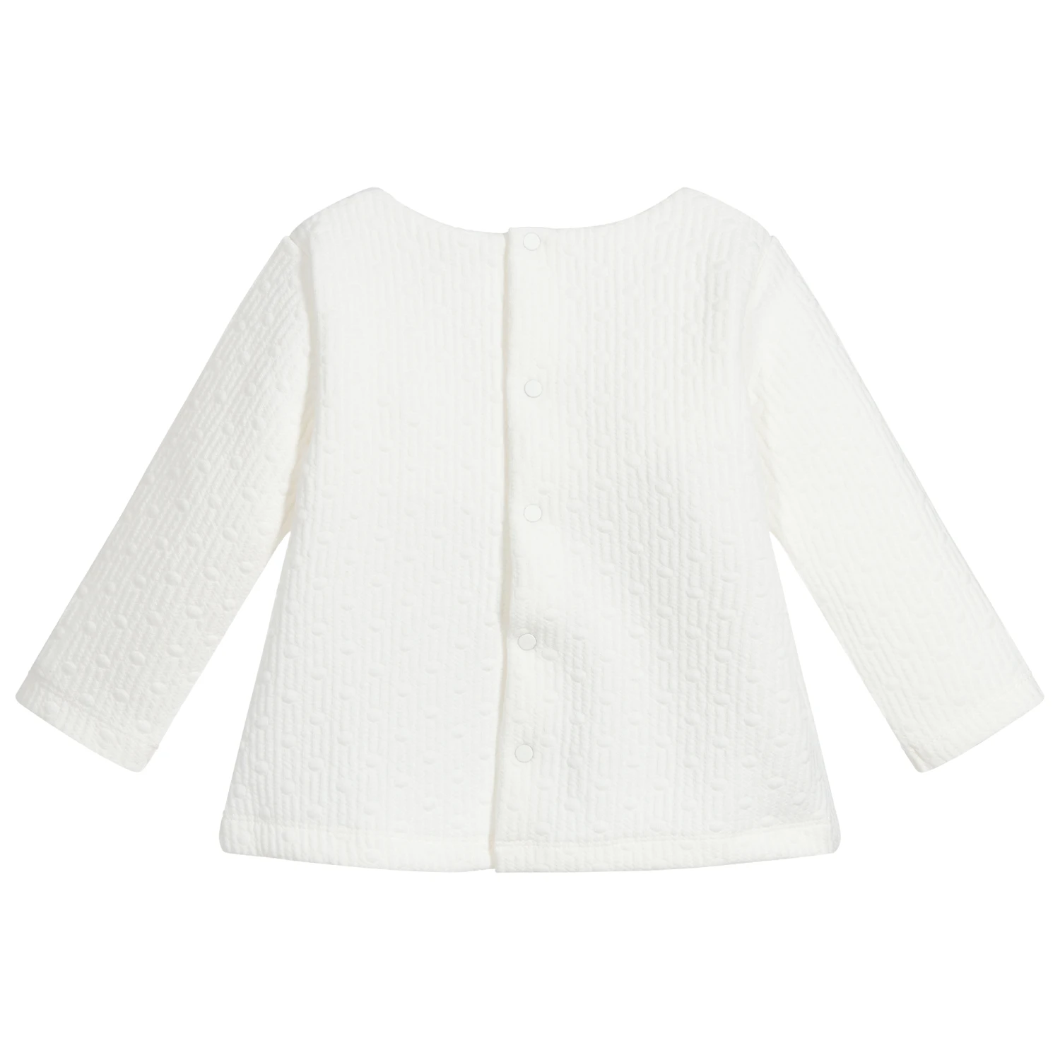 Ivory top for baby girls by Patachou, made in soft mid-weight jersey. It has a raised dot pattern, with pretty ruffle and lace trims.