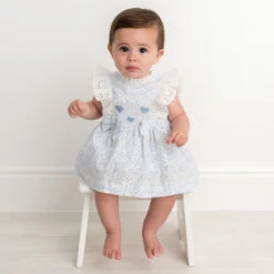 A beautiful pink, full length ceremony gown for baby girls by Paz Rodriguez. The organza overlay is soft and lightweight and trimmed with ivory lace. There is a pink cotton lining and back button fastening.