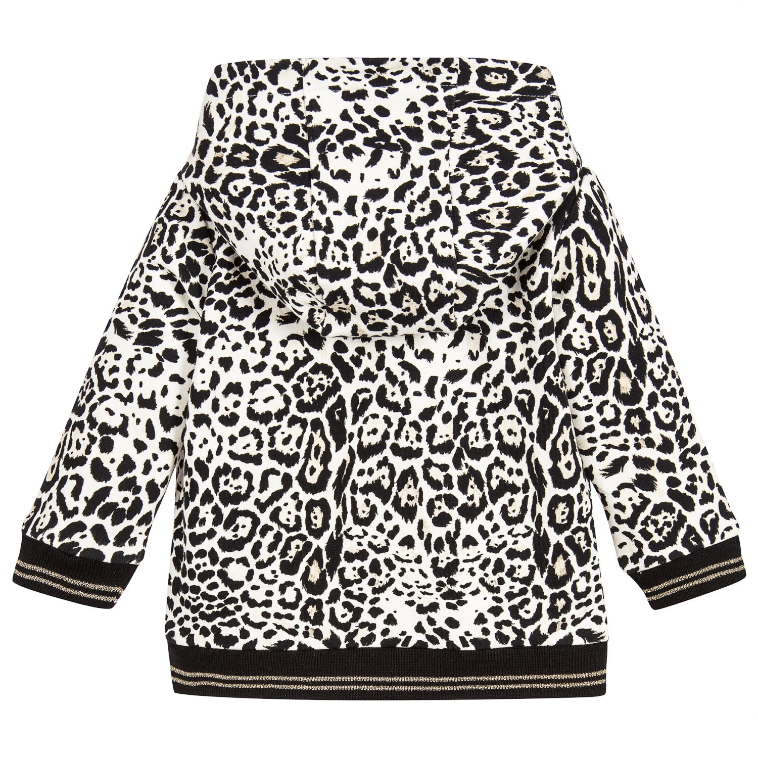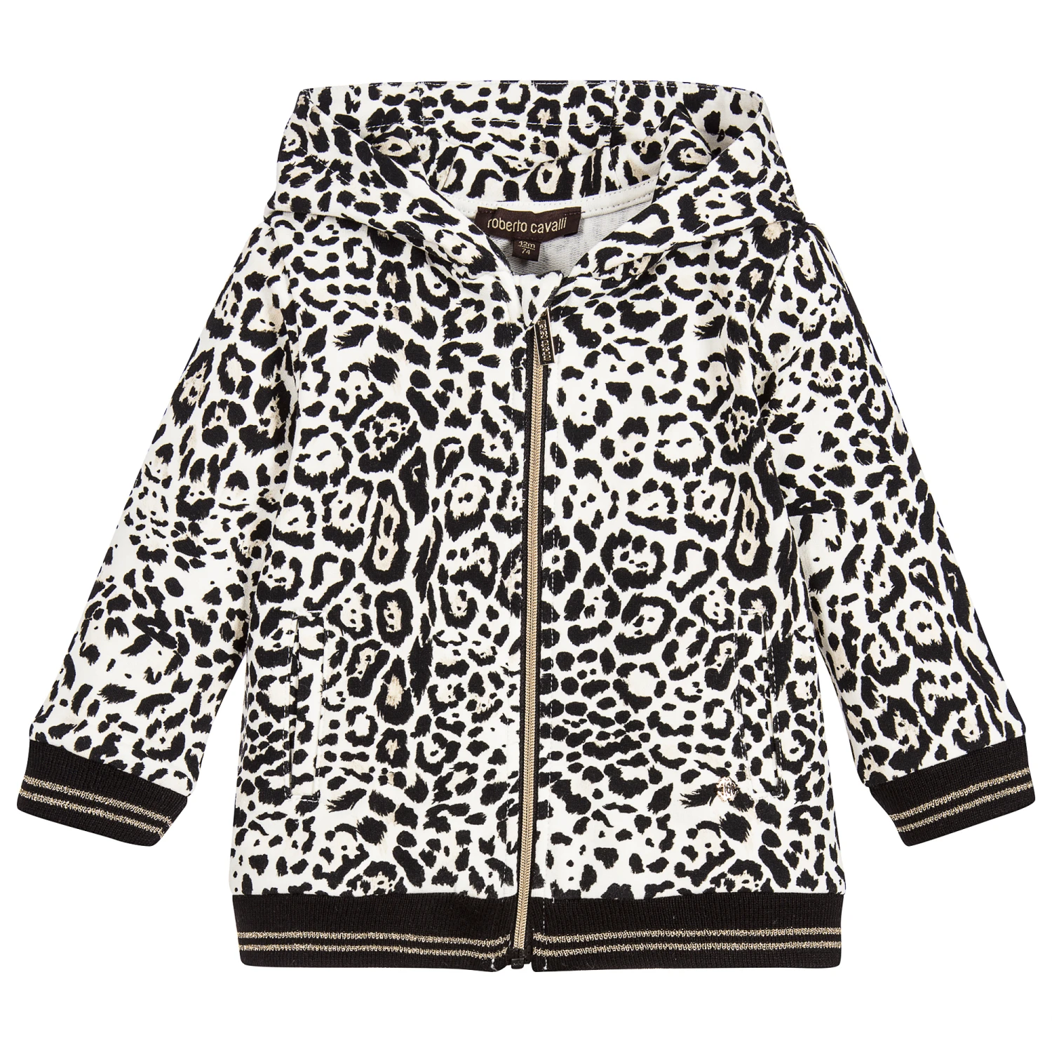 Every fashionable baby girl needs some Roberto Cavalli in her wardrobe. Why not add a mini me leopard print hooded top, to bring a touch of feline flair to her outfits. Made in stretch cotton jersey, with a gold-coloured zip fastening, a ribbed collar and cuffs, side pockets and ‘RC’ logo badge stitched at the hip.