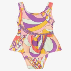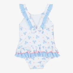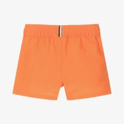 White and navy blue striped Sunuva swimshorts for baby boys, with a pink watermelon whale print. In silky polyester with UPF50+ sun protection, they have a soft, waterproof lining for comfort. The back pocket has an eyelet to allow water to drain away.